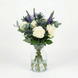 Classic: 5x white avalanche Roses, 3x Veronica, 2xEryngium and 3 Eucalyptus