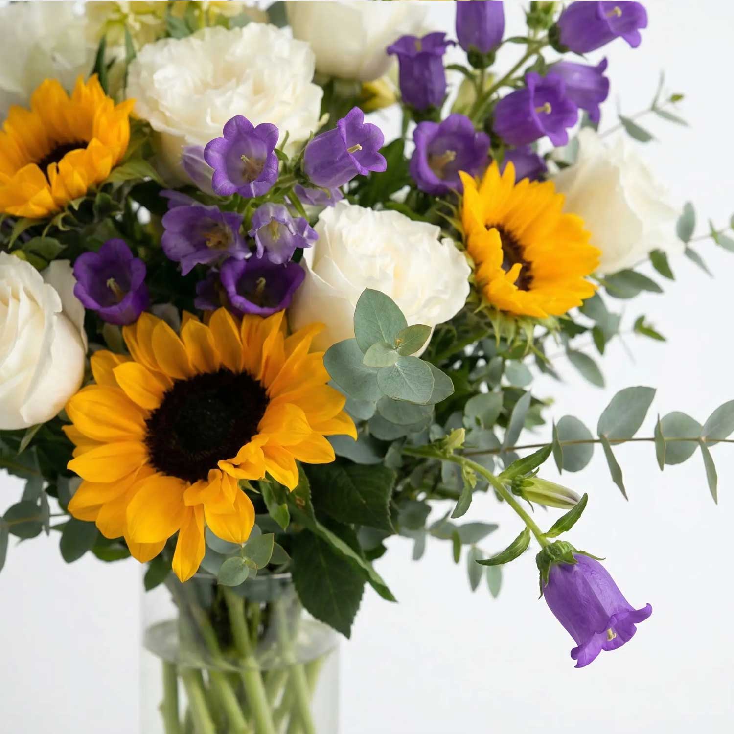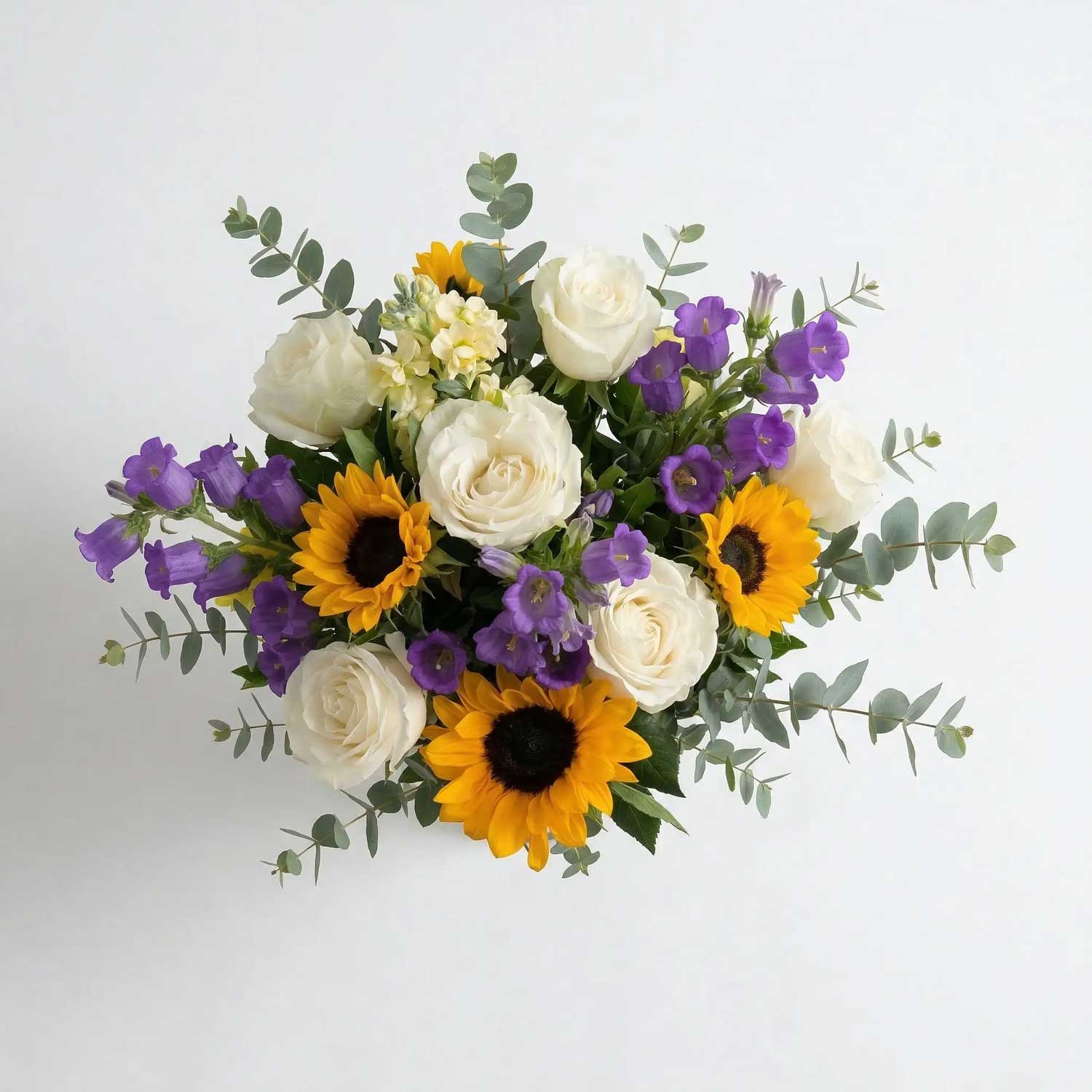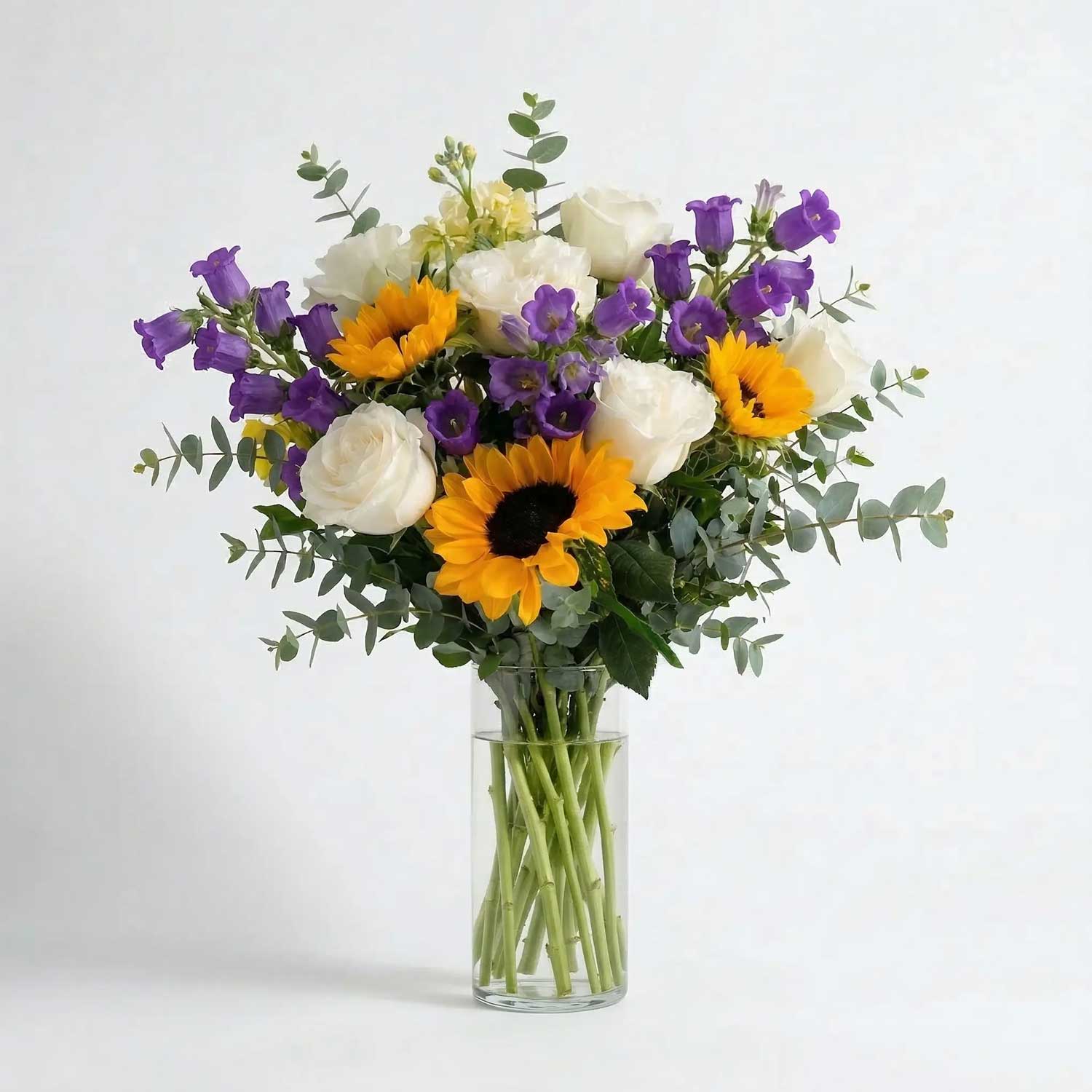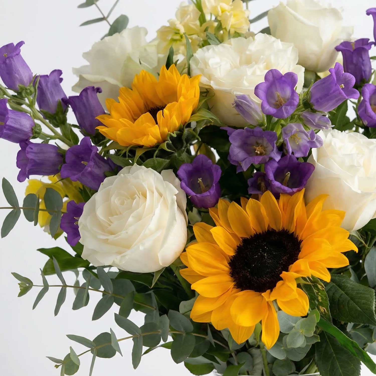 The Aurelia combines bright seasonal colour with soft garden textures, creating a joyful bouquet that feels both luxurious and effortlessly natural. Perfect for sending flowers just because, celebrating a birthday, or brightening someone’s day, this sunflower and rose bouquet delivers a little sunshine with every stem.